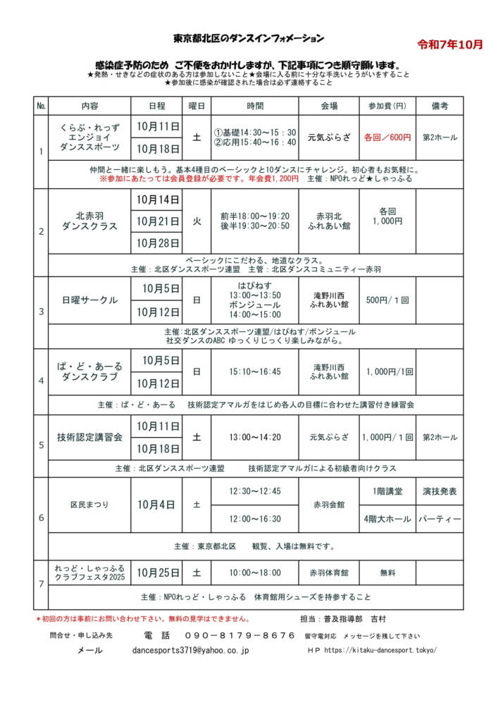 2025年10月のダンスインフォメーション