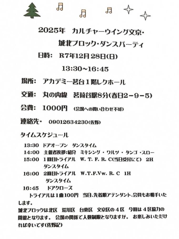 2025年 カルチャーウィング文京 城北ブロックダンスパーティ